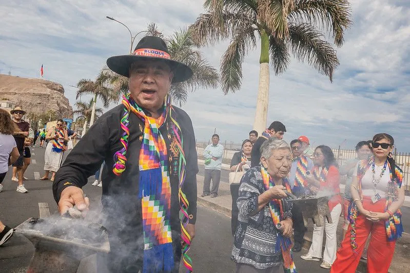 “Quiero pedir por las personas que partieron, por nuestros bailarines, por la Mesa Carnaval y por el Morro de Arica”, dijo en su rogativa el presidente de la Federación “Kimsa Suyu”, Gabriel Mamani.