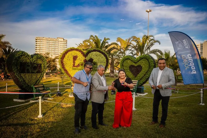 El Parque Brasil se llenó de ternura y amor con la instalación de hermosos Topiarios en forma de corazón, una intervención que realizó la Municipalidad de Arica y que entrega un toque de frescura y modernidad a este tradicional espacio público. Estas esculturas vivas, resultado del arte de la poda y formación de plantas en figuras geométricas y decorativas, transforman el entorno y renuevan la experiencia de quienes recorren el parque.