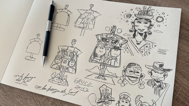 Sobre sus ilustraciones, el artista dijo que su idea fue que toda esta multiculturalidad del carnaval esté plasmada dentro del vestido de una bailarina y en el frontis de la catedral San Marcos. “Eso me pareció como un realismo mágico chileno que estaba ahí”, dijo Garvo.