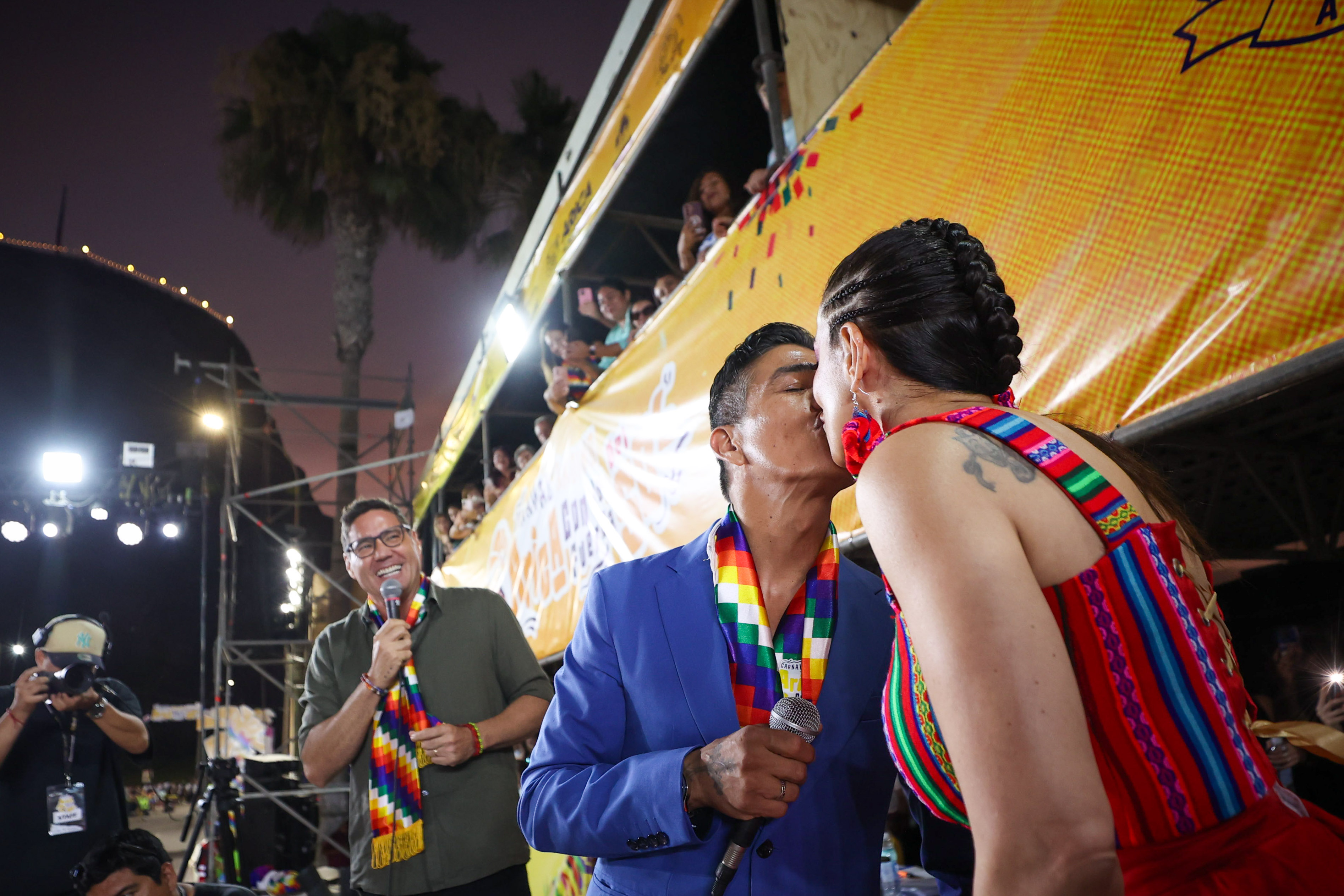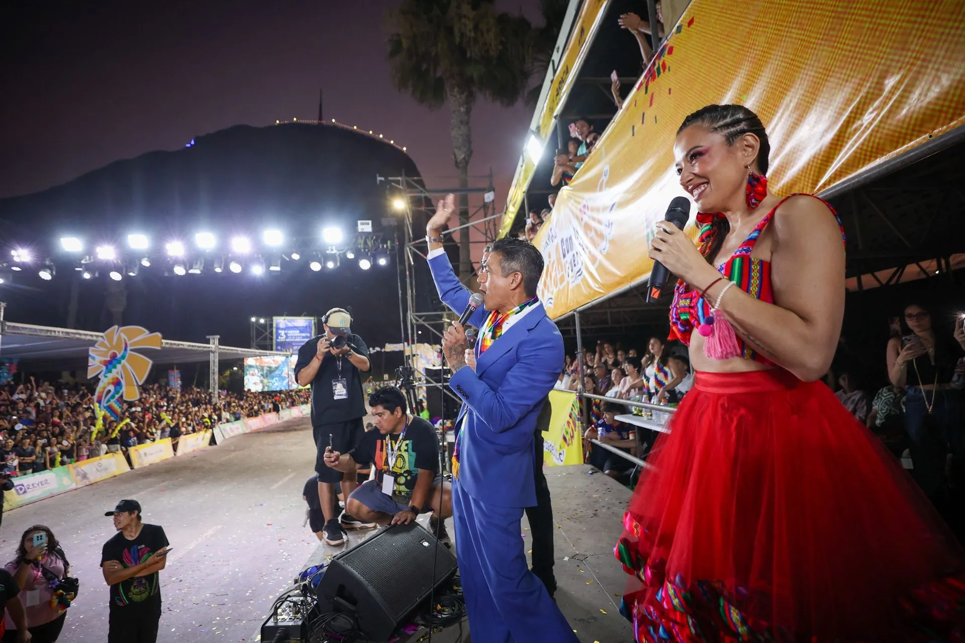El carnaval se vistió de gala, y en representación de la comunidad ariqueña, el alcalde Orlando Vargas agradeció la presencia del hijo pródigo, Américo, y de los populares y queridos animadores de televisión.