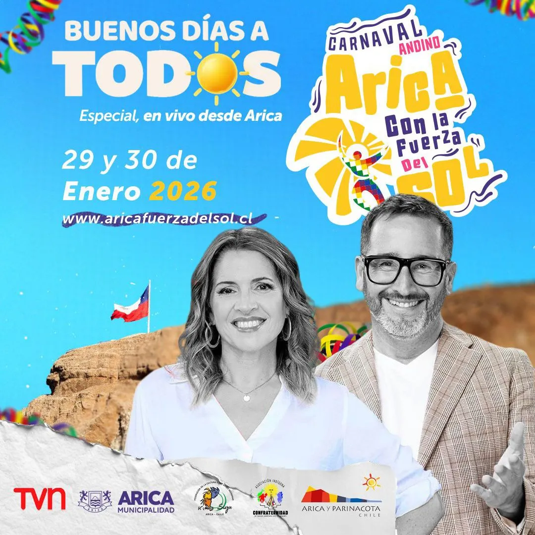 Una de las grandes novedades que tendrá la edición 2026 del Carnaval Andino “Arica Con la Fuerza del Sol” será la cobertura del matinal nacional de TVN, con dos días de cobertura en vivo y una posterior nota al cierre, Arica tendrá la pantalla nacional que se merece.